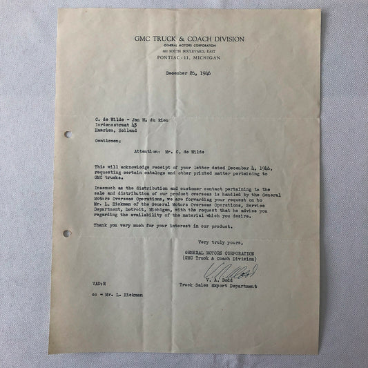 1945 - 1946 GMC Truck and Coach Letter Letterhead Document