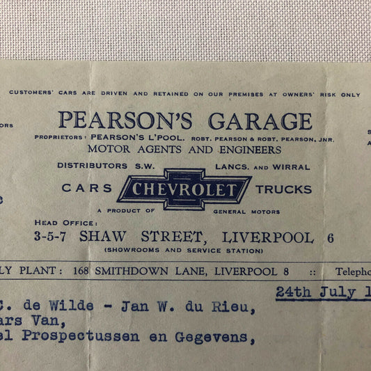 1945 Chevrolet Dealership Letter UK Garage Oldsmobile Car Truck Letterhead
