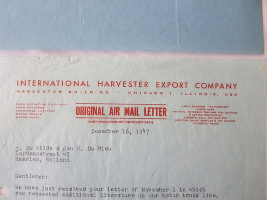 1946 - 1947 International Harvester Export Letter Letterhead Document Lot of 4