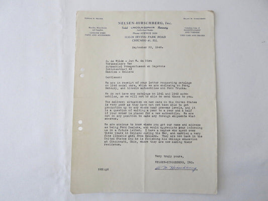 1946 - 1949 Nelsen - Hirschberg Ford Car & Truck Dealer Letter Letterhead Lot 4x
