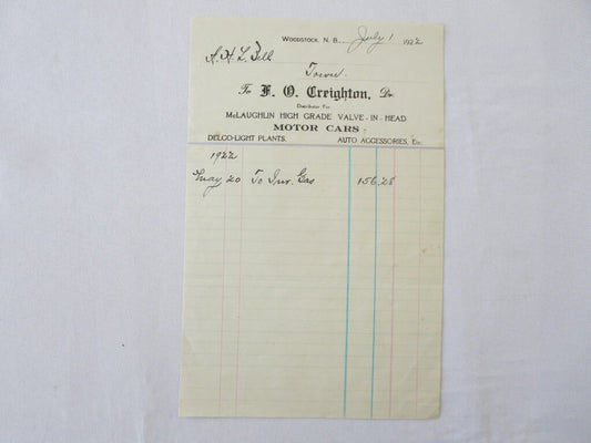 1922 Mclaughlin Motor Car Dealership Invoice Document Letter Form