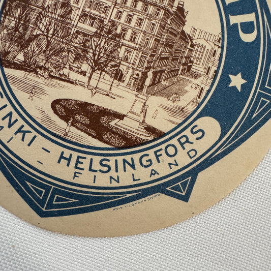 Vintage Travel Luggage Label Hotel Kamp Helsinki Finland Finnish