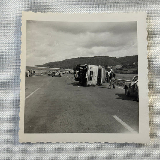 Vintage Truck Bus Accident Wreck Rollover Photo Photograph Borgward