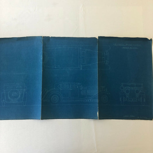 1930 Coachbuilder Car Design Blueprint Rendering Blue Print Phaeton Body Style
