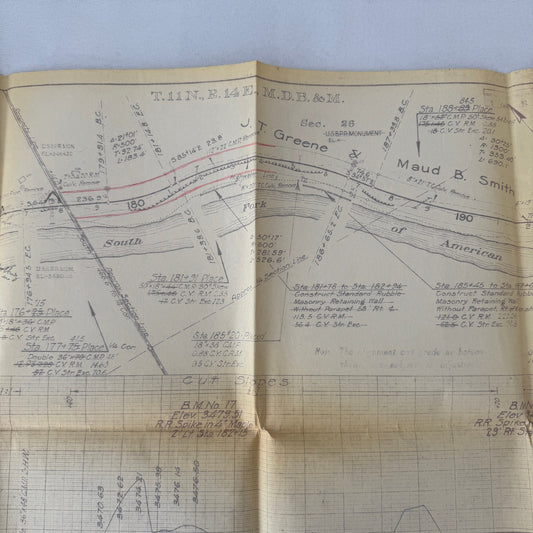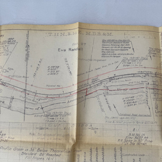 1931 California Highway Dept “As Built” Road Plan Map Blueprint T11N R14E MDB&M
