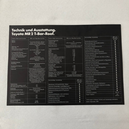 Vintage Toyota MR2 T-Top Sports Car Sales Sheet Brochure GERMAN Text