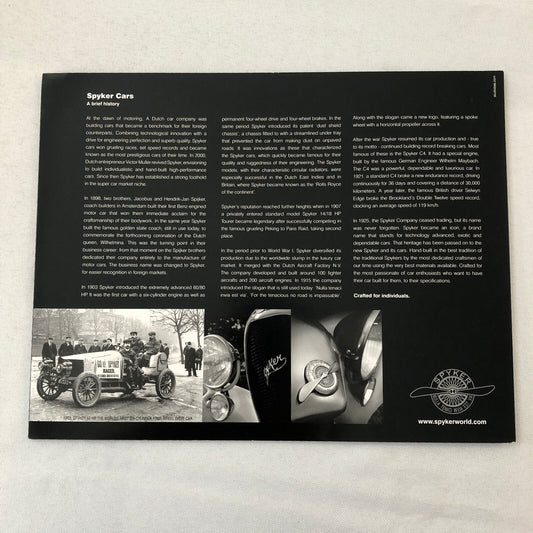 Spyker Car Sales Brochure Catalog C8 Laviolette SWB C8 Spyder SWB