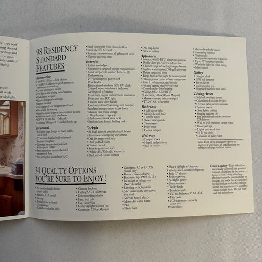 Thor Residency Motorhome Camper RV Sales Brochure Catalog Vintage Advertising