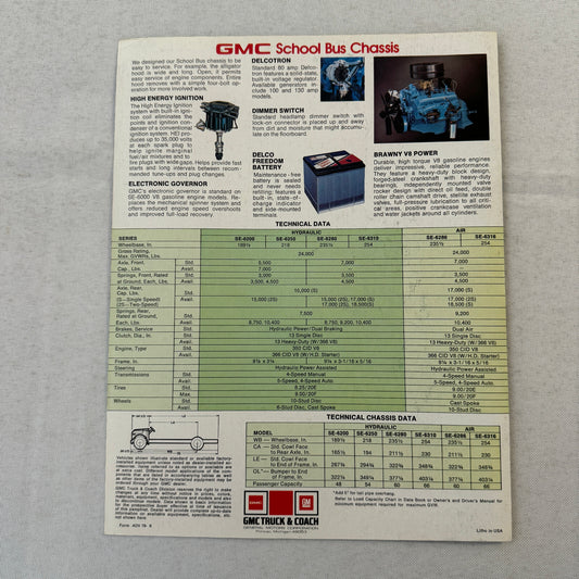 GMC School Bus Chassis Truck Sales Sheet Brochure Advertising Vintage