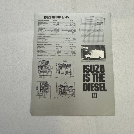 Isuzu Diesel Engine Sales Sheet Brochure Vintage Motorhome RV Camper Truck QD