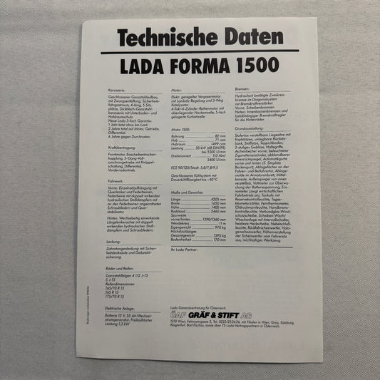 Lada Forma 1500 Car Sales Brochure Catalog Advertising German Text European