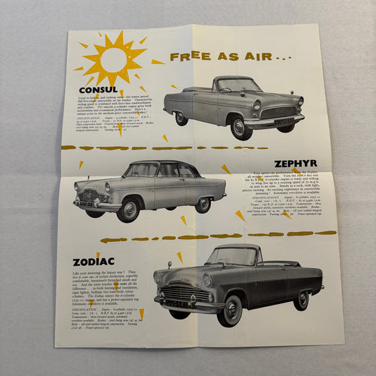 Ford Consul Zephyr Zodiac Convertible Car Sales Brochure Catalog Vintage
