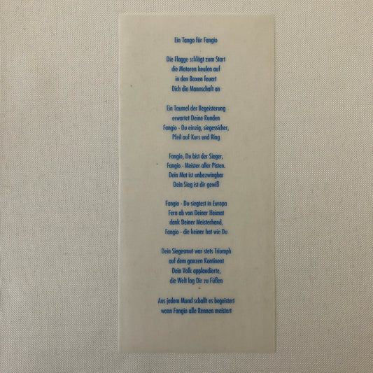 1991 A Tribute to Juan Manual Fangio Mercedes Benz Museum Menu Event Brochure