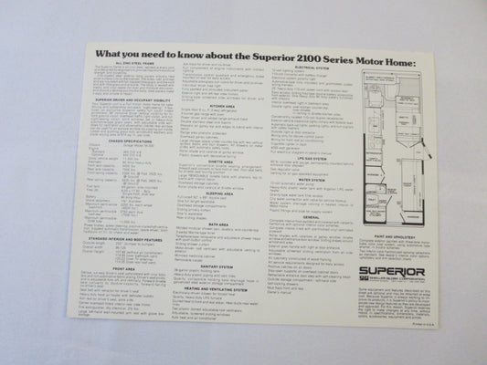 1970's ? Superior 2100 Series Motor Home Sales Brochure Catalog RV Camper