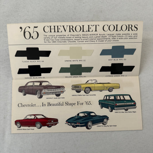 1965 Chevrolet Exterior Color Paint Chip Brochure Catalog Corvette Chevelle +