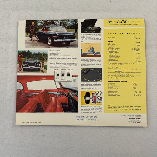 1959 Studebaker Lark 4 Door Sedan Car Sales Brochure Catalog Vintage Advertising