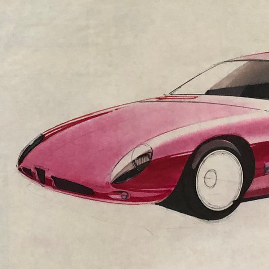 Vintage Concept Car Design Illustration Sketch Drawing Art Signed