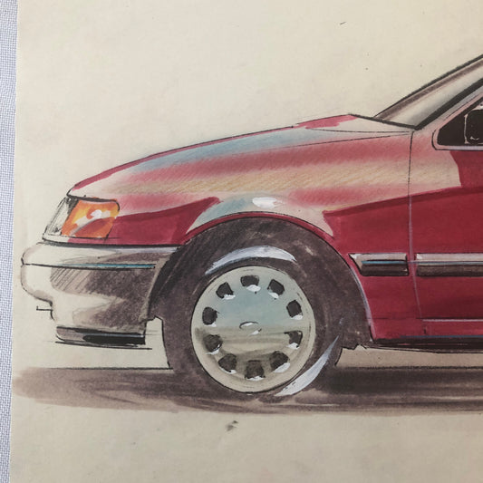 Vintage Concept Car Design Illustration Sketch Drawing Art 1987 Ford Scorpio Car