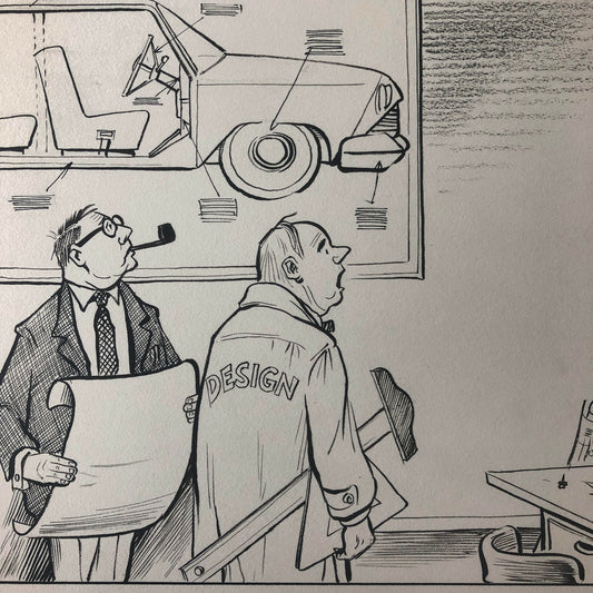 Vintage 1960s Newspaper Comic Illustration Art Drawing Car Design Designer
