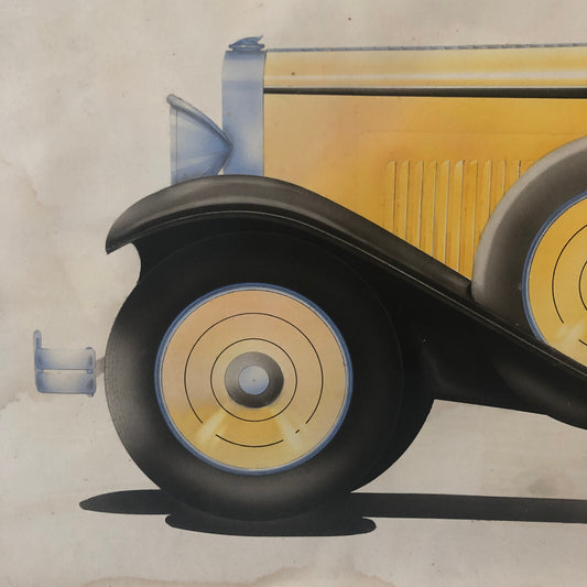 Antique Automobile Car Illustration Art Signed and Dated 1929