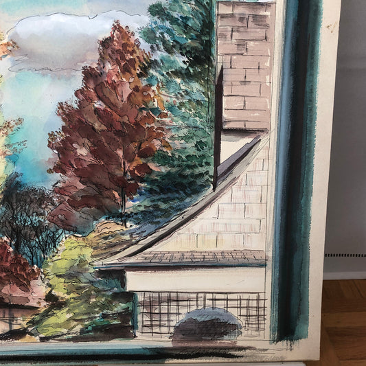 Vintage Painting Art Artwork Artist Arthur E Sudler House Trees Fall Colors