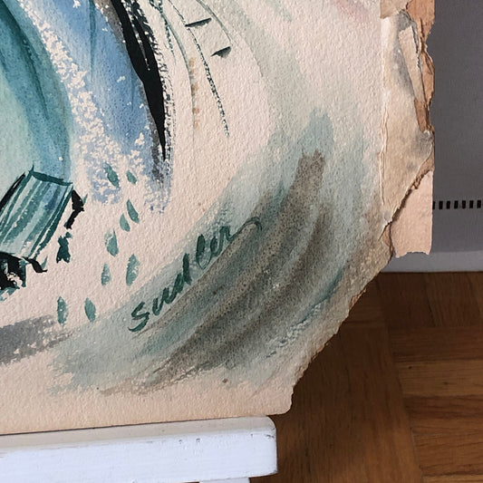 Vintage Painting Art Artwork Artist Arthur E Sudler Water Buildings 1931