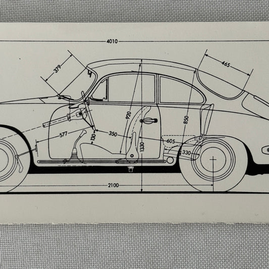 Porsche 356 Car Line Drawing Diagram Photo Photograph Print