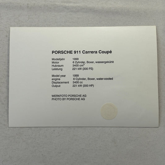 1999 Porsche 911 Carrera Coupe Factory Press Photo Photograph