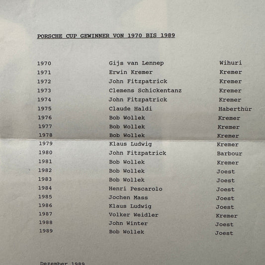 Porsche Cup Racing Factory Press Release Bob Wollek Photo 1989 Vintage German