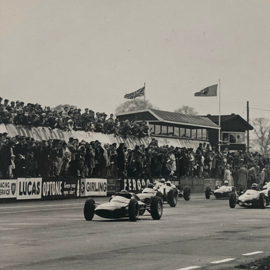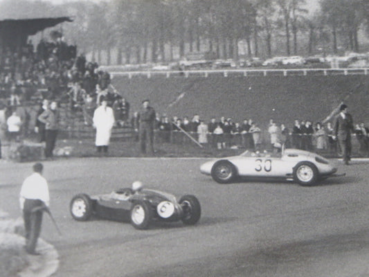 Vintage 1959 Racing Photograph Sitrling Moss & Bruce McLaren British Grand Prix