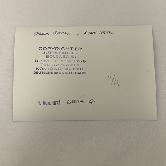 Vintage Racing Photo 1971 German Grand Prix Emerson Fittipaldi Reine Wisell