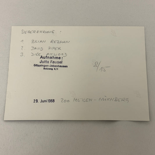 Vintage Racing Photo Brian Redman David Piper Dick Attwood 1968 Photograph