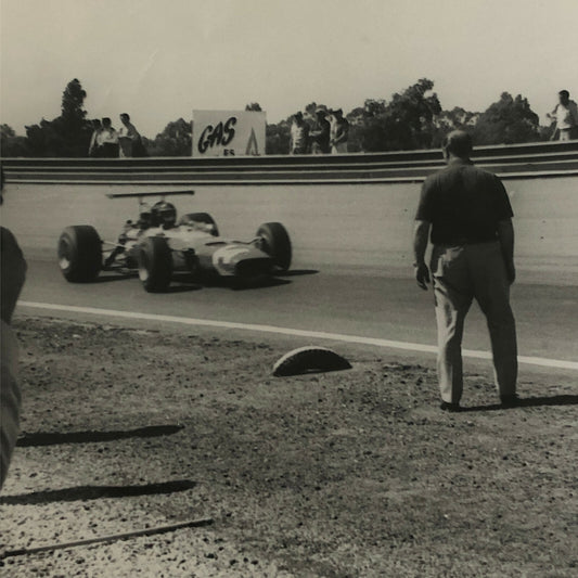 Vintage Racing Photo Photograph 1968 Juan Manuel Fangio Watching Grand Prix Car