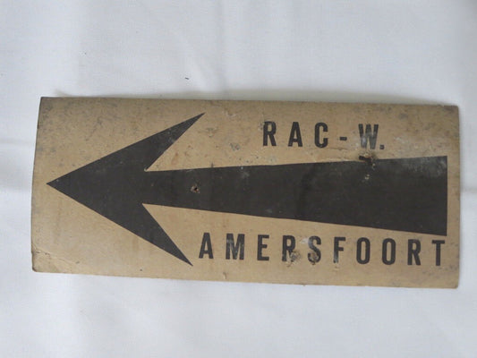 Vintage RAC West Amersfoort Car Rally Small Cardboard Directional Arrow Sign