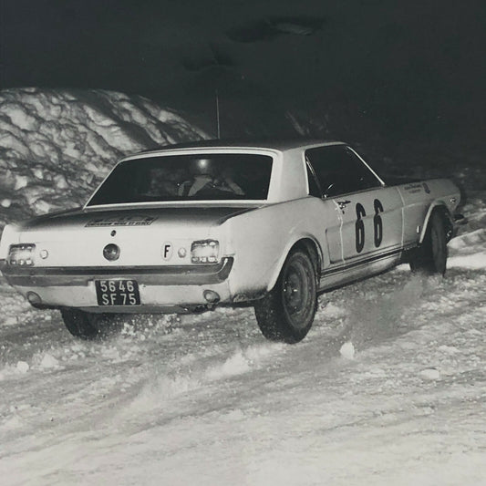 Vintage DPPI Racing Photo Photograph Ford Mustang Rally Car in Snow Greder +