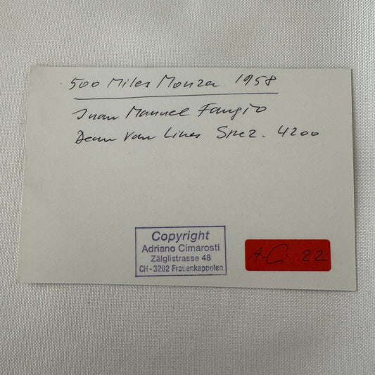 Juan Manuel Fangio 1958 Monza Racing Car Photo Photograph Modern Print