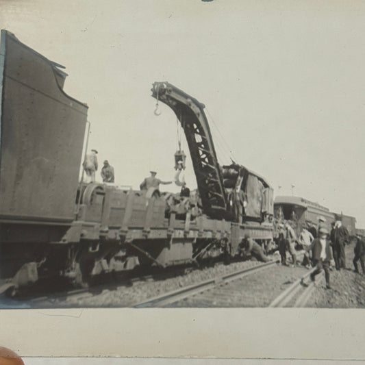 Antique Glass Plate Lantern Slide Photo Train with Crane