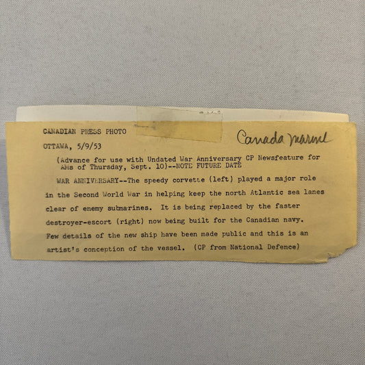 1953 Royal Canadian Navy Press Photo Photograph Warship Corvette Destroyer