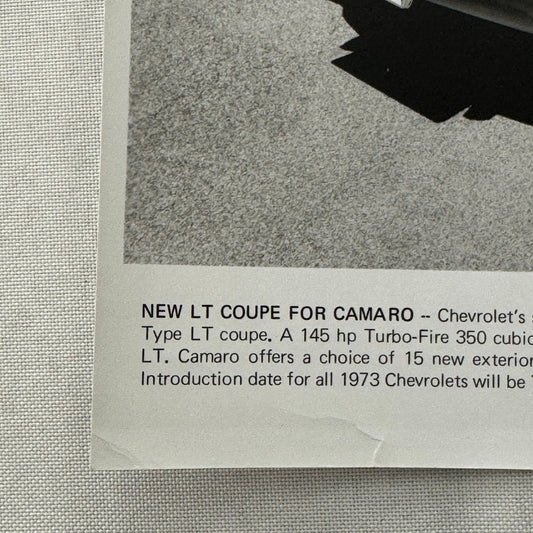 1973 Chevrolet Camaro Factory Press Publicity Photo Photograph Vintage