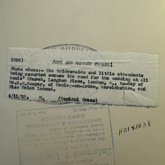1933 Wedding Press Photo Photograph British Underwood & Underwood Topical Press