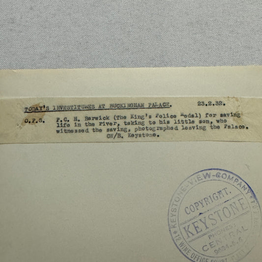 1932 Press Photo Photograph Bravery Medal for Man Saving Life Keystone