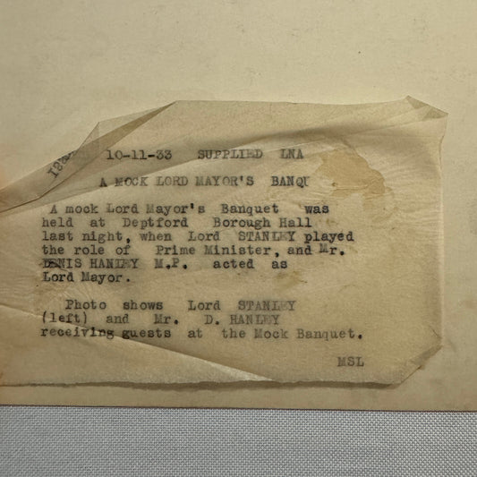 1933 Press Photo Photograph Mock Lord Mayors Banquet London News LNA