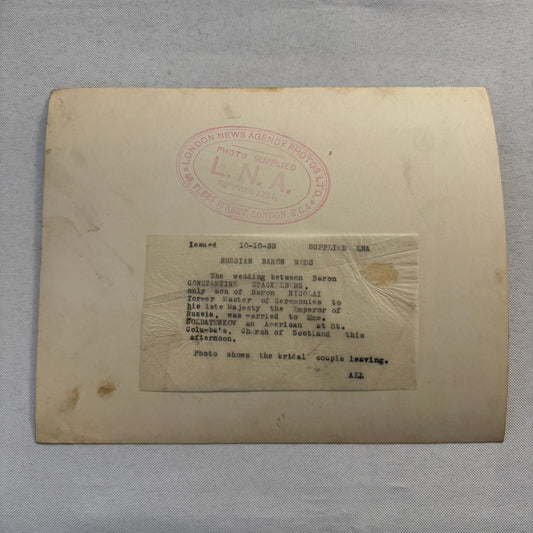 1933 Wedding Press Photo Photograph London News Son of Russian Baron Nicolai LNA