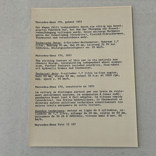 1931 Mercedes Benz 170 Car Factory Press Photo Photograph Print