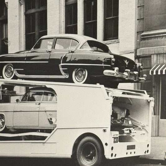 Vintage 1954 Fruehauf Car Trailer Truck Photo Cadillac Packard Modern Print
